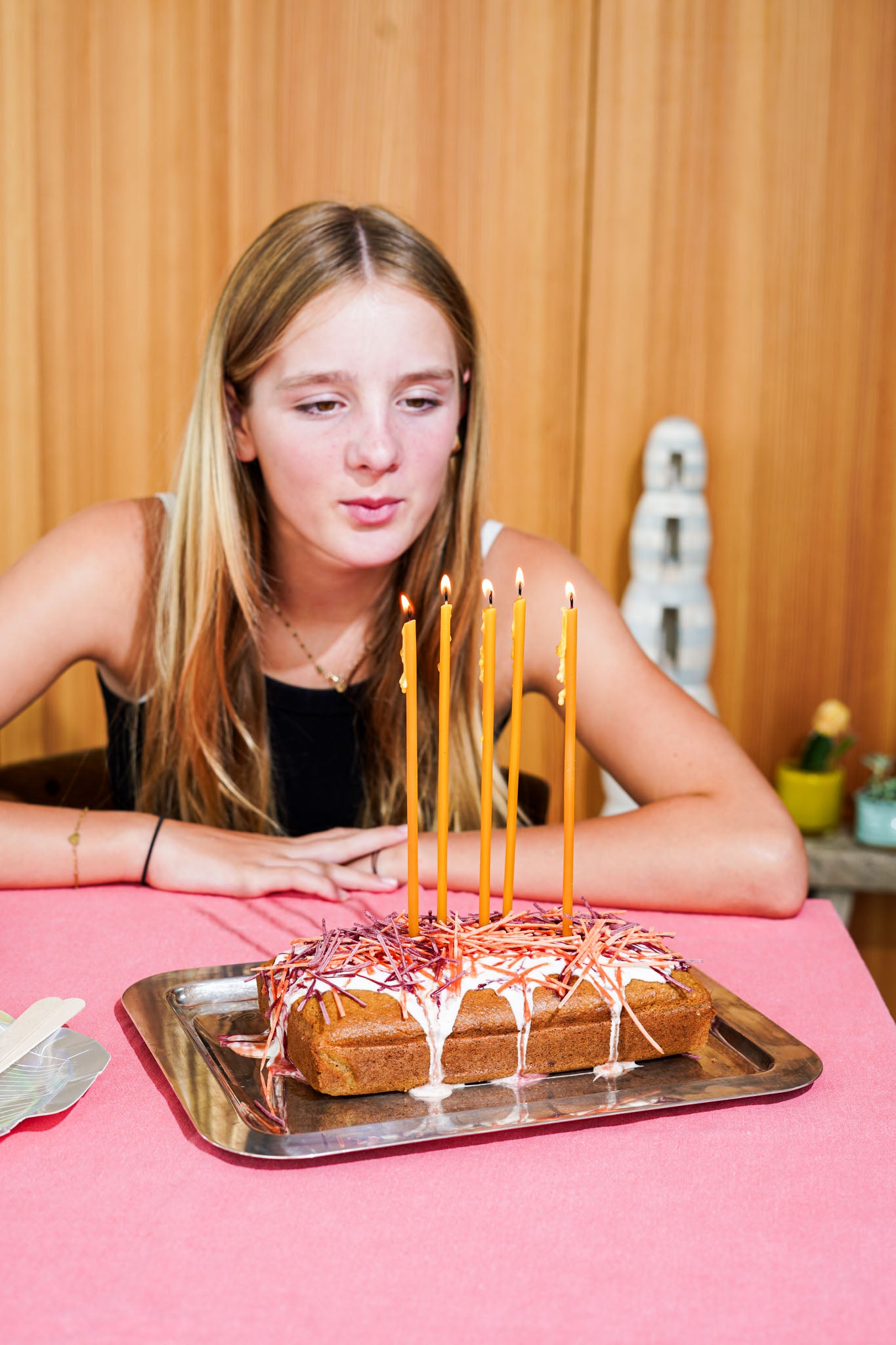 Giet het beslag in de bakvorm, strijk glad en bak 25 minuten, tot een satéprikker er schoon uitkomt. Hoe langer je hem bakt, hoe droger hij wordt.
