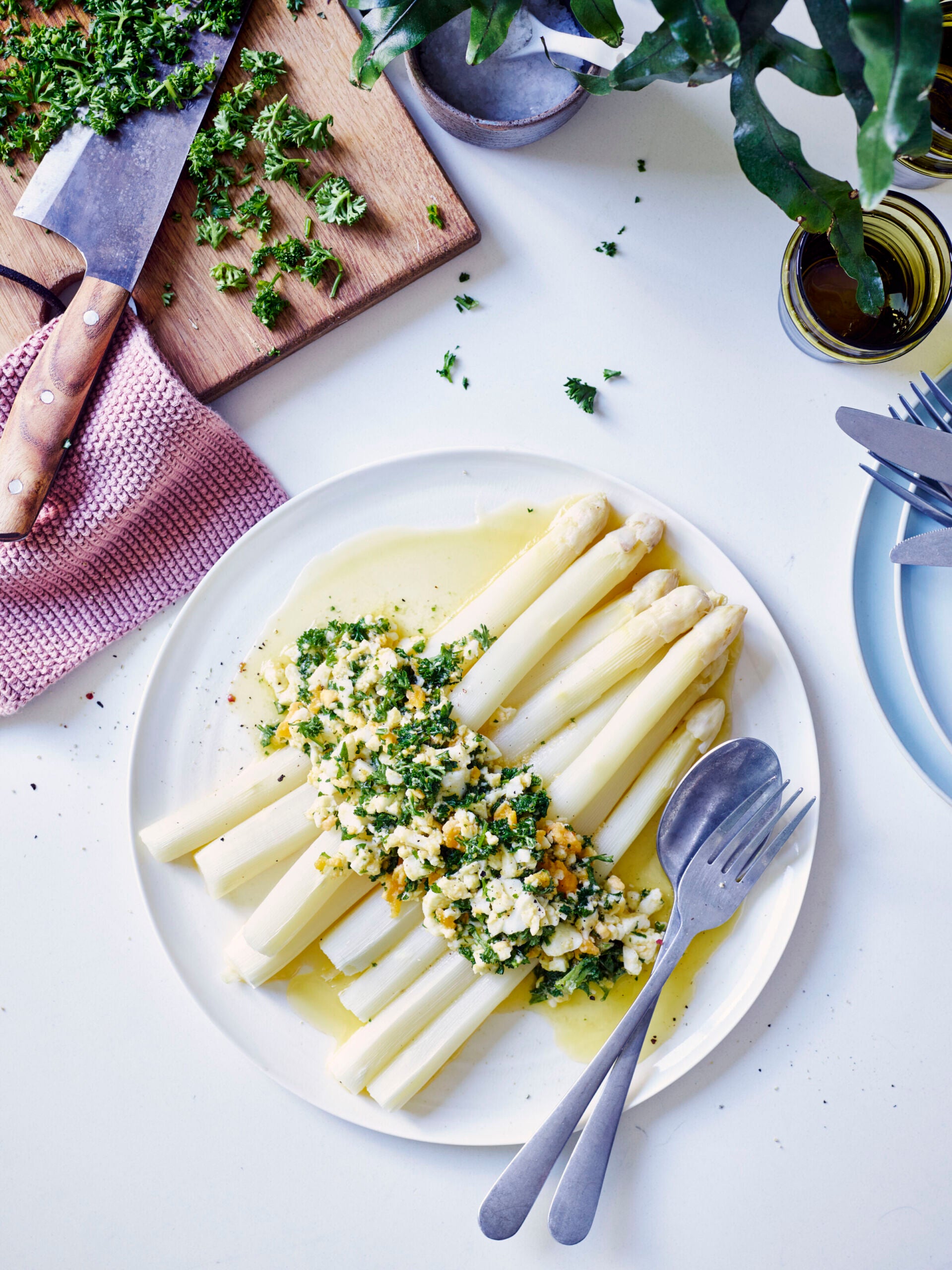 Geniet van klassieke asperges à la flamande. Ontdek het smaakvolle en traditionele recept van Sofie Dumont.