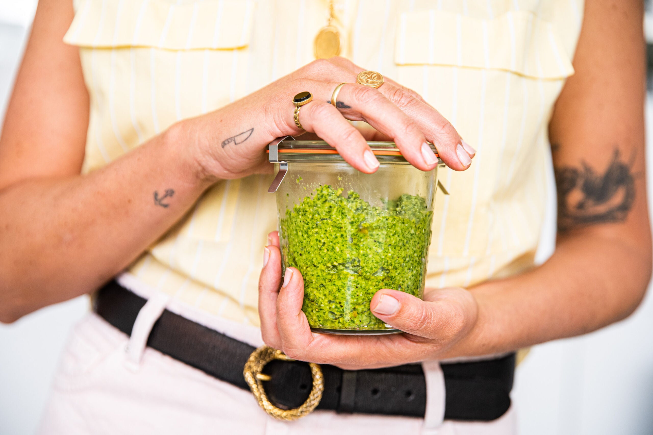 Wat heb je nodig?100 g verse basilicumblaadjes