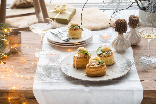 Een half uurtje voor je wil serveren; snij de deksels uit de bladerdeeg pasteitjes, warm ze een vijftal minuten op in een voorverwarmde oven van 180°.