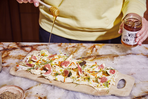 Butter board met geitenkaas, noten en honing