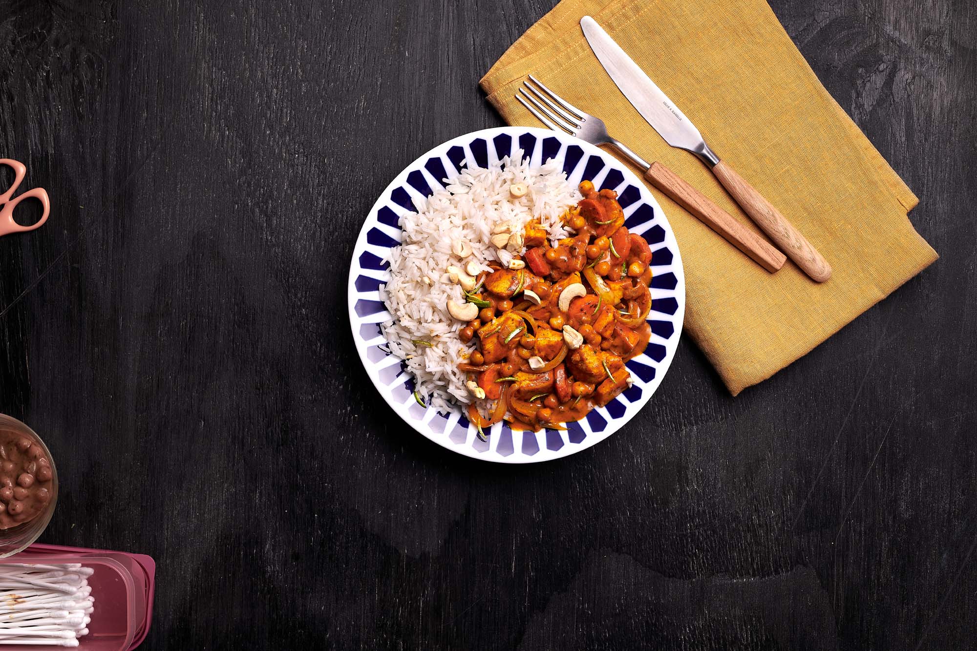 Serveren: Serveer de Butter Chicken met rijst. Werk af met cashewnoten en verse koriander of Thaise basilicum.