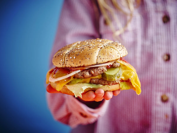 Leg ze dubbel tussen het opgewarmd broodje, serveer met mayo, ketchup, verse ui en augurk en de sla ertussen.