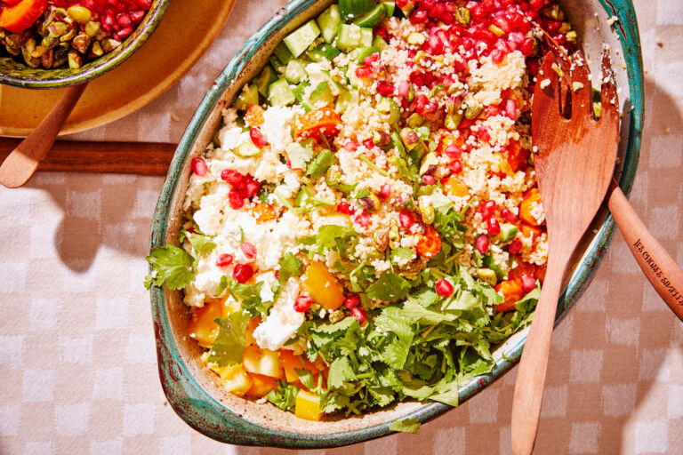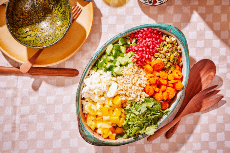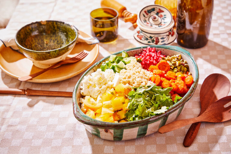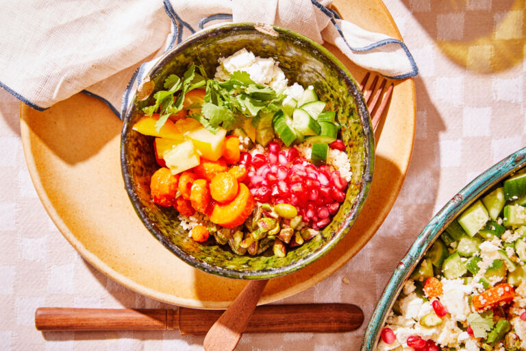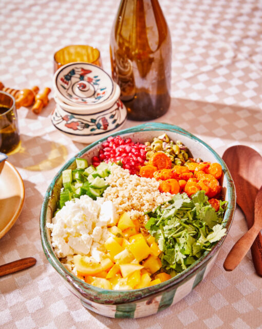 Couscous Salade met Gecarameliseerde Wortel, Feta, Granaatappel en Pistachenoten