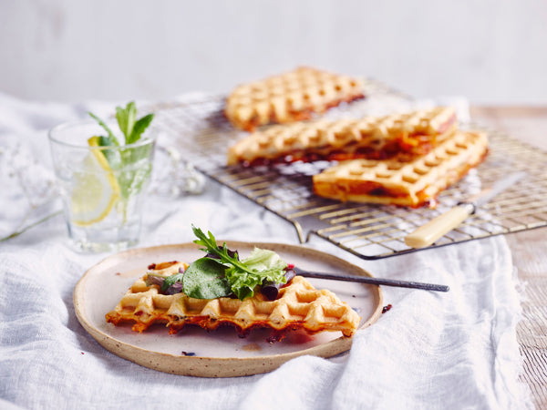 Wil je zelf aan de slag met croque wafeltjes met beenham, jonge kaas, basilicum en tomaat? Ontdek het volledige recept hier!