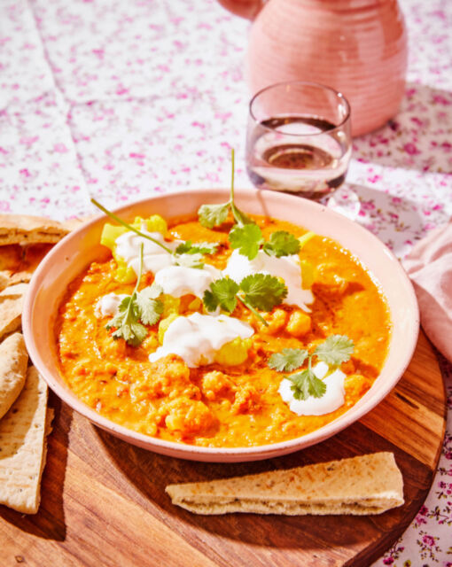 Serveren: Schep de dahl in diepe kommen en garneer met verse koriander, een lepel yoghurt of zure room, en een paar bloemkoolroosjes.
