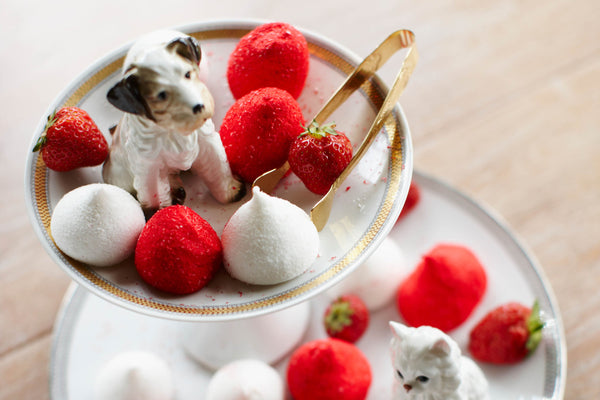 Voor de helft van de marshmallows laat je ze gewoon ‘natuurlijk’ spuiten. Voor de andere helft voeg je een beetje (roze) kleurstofpoeder toe, laat je de marshmallows opstijven in de koelkast en rol je ze vervolgens door de kokosschilfers. Je kunt ook de kokos roze maken voor de roze marshmallows.