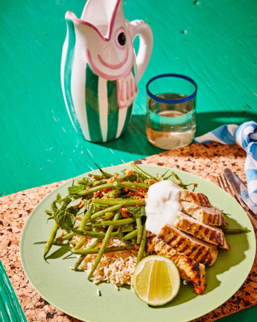 Gegrilde Koriander Jalapeño Kip met Sesam Boontjes