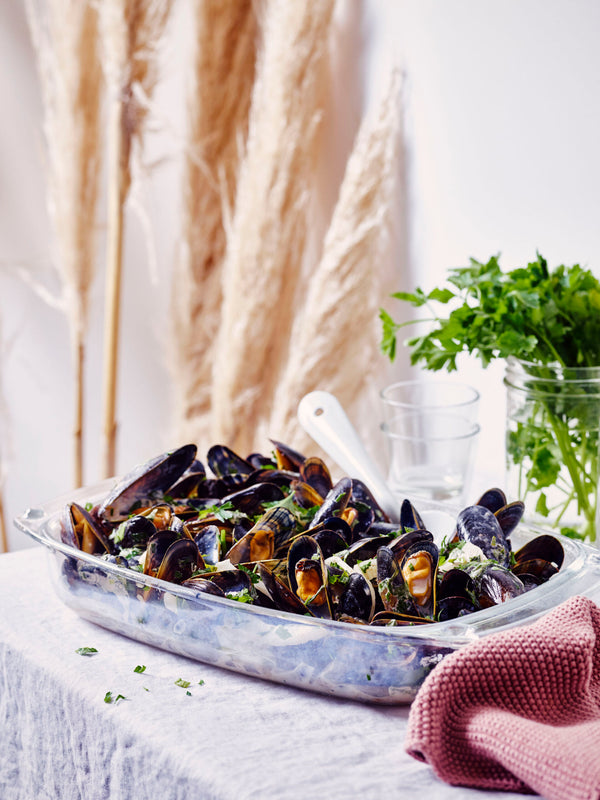 Spoel de mosselen in ruim koud water en verwijder eventuele onzuiverheden.