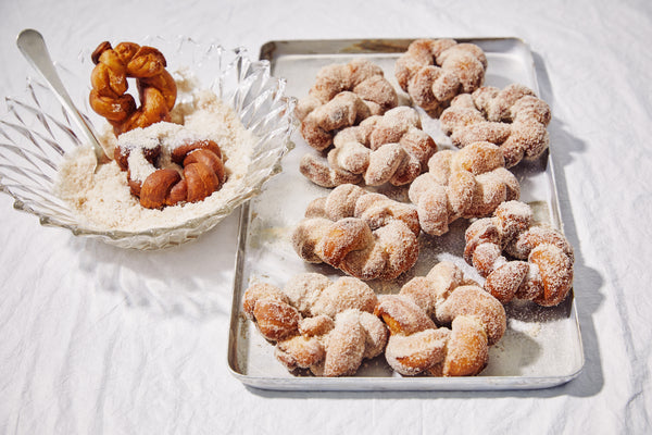 Om de donuts te vormen wordt het deeg niet uitgesneden maar gevlochten. Zo krijg je een onweerstaanbare smaak, dan suiker en kaneel on top!