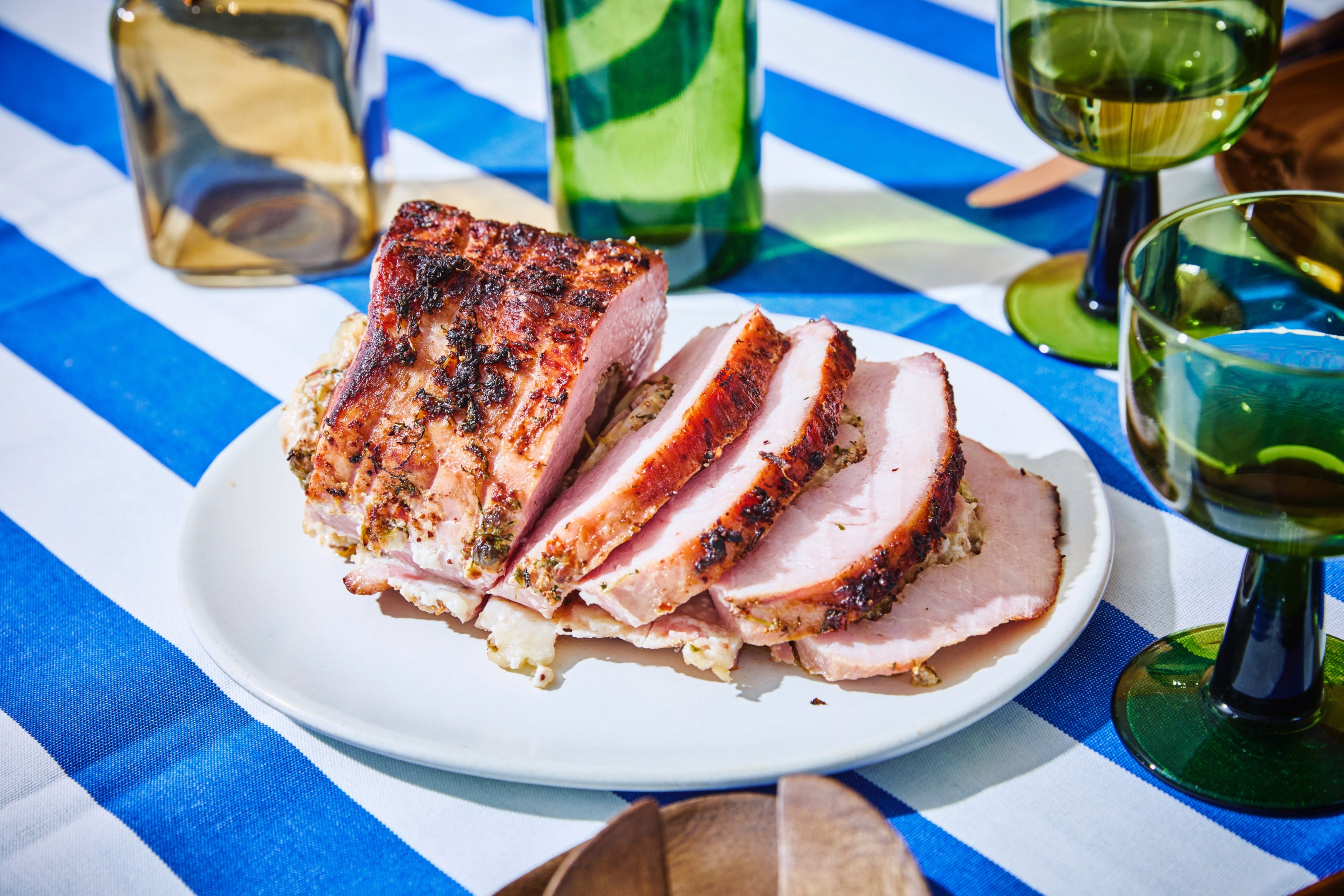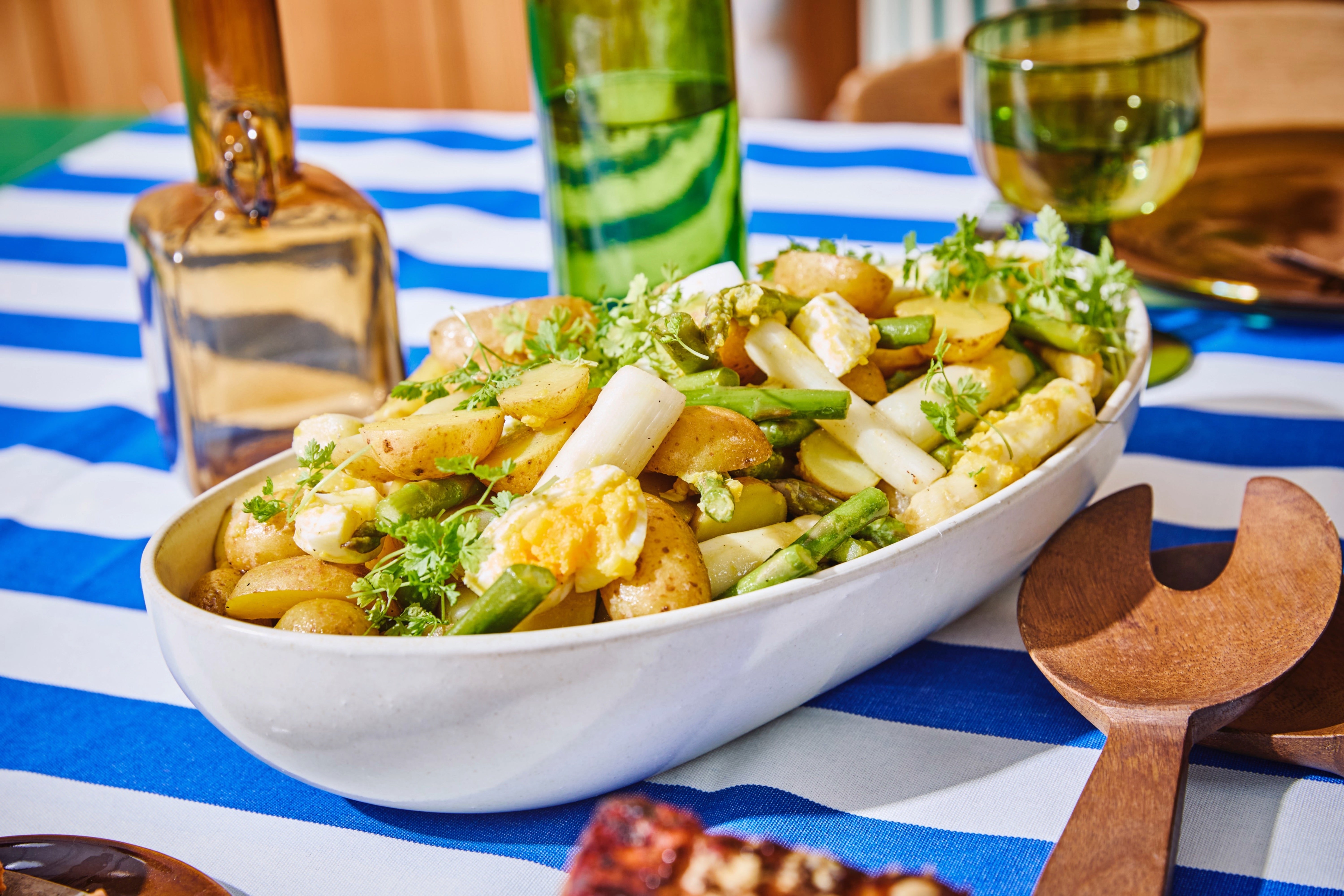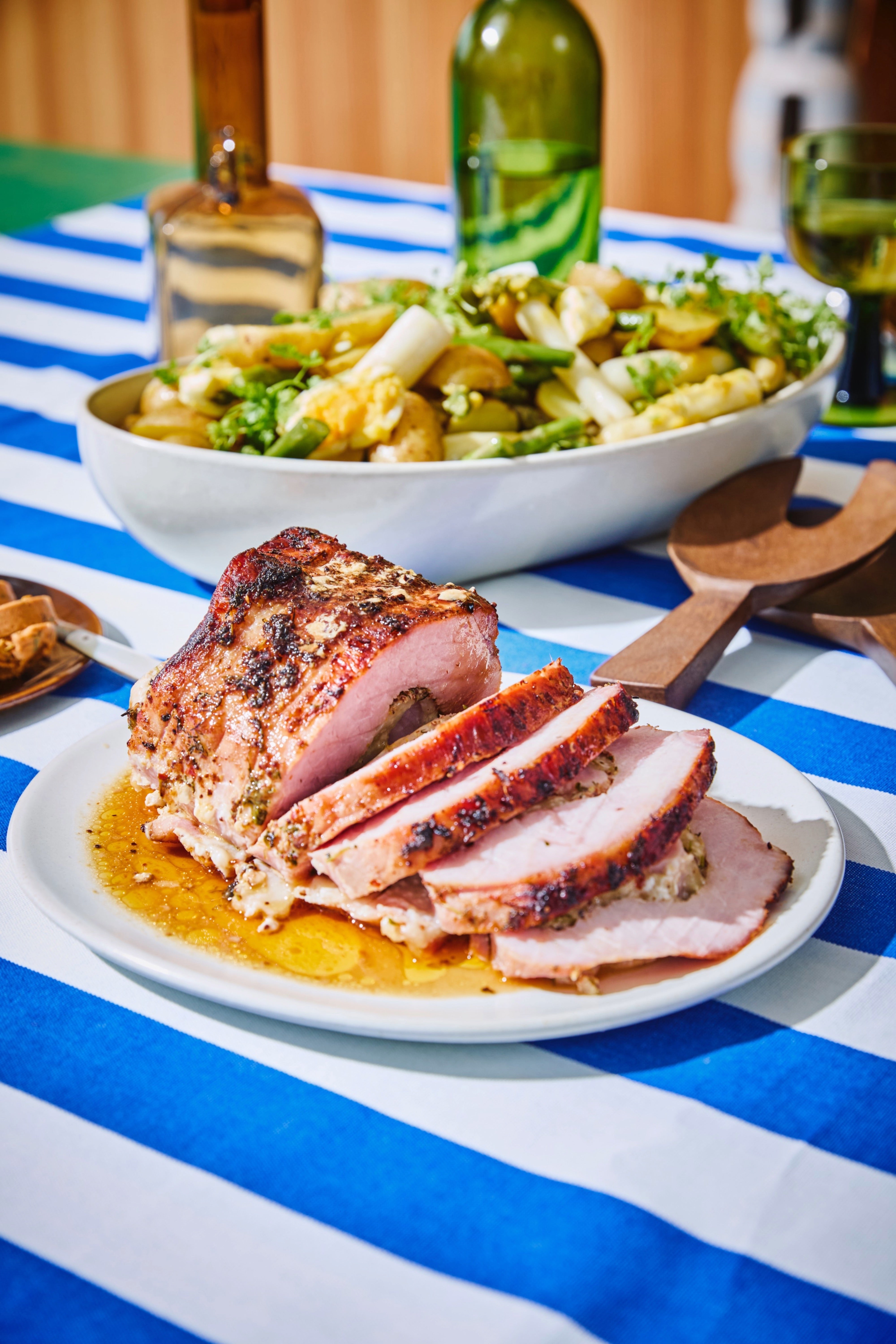 Gevuld varkensgebraad met Cowboy Butter, lauwe aspergesalade ‘à la flamande’ en krieltjes met kervel