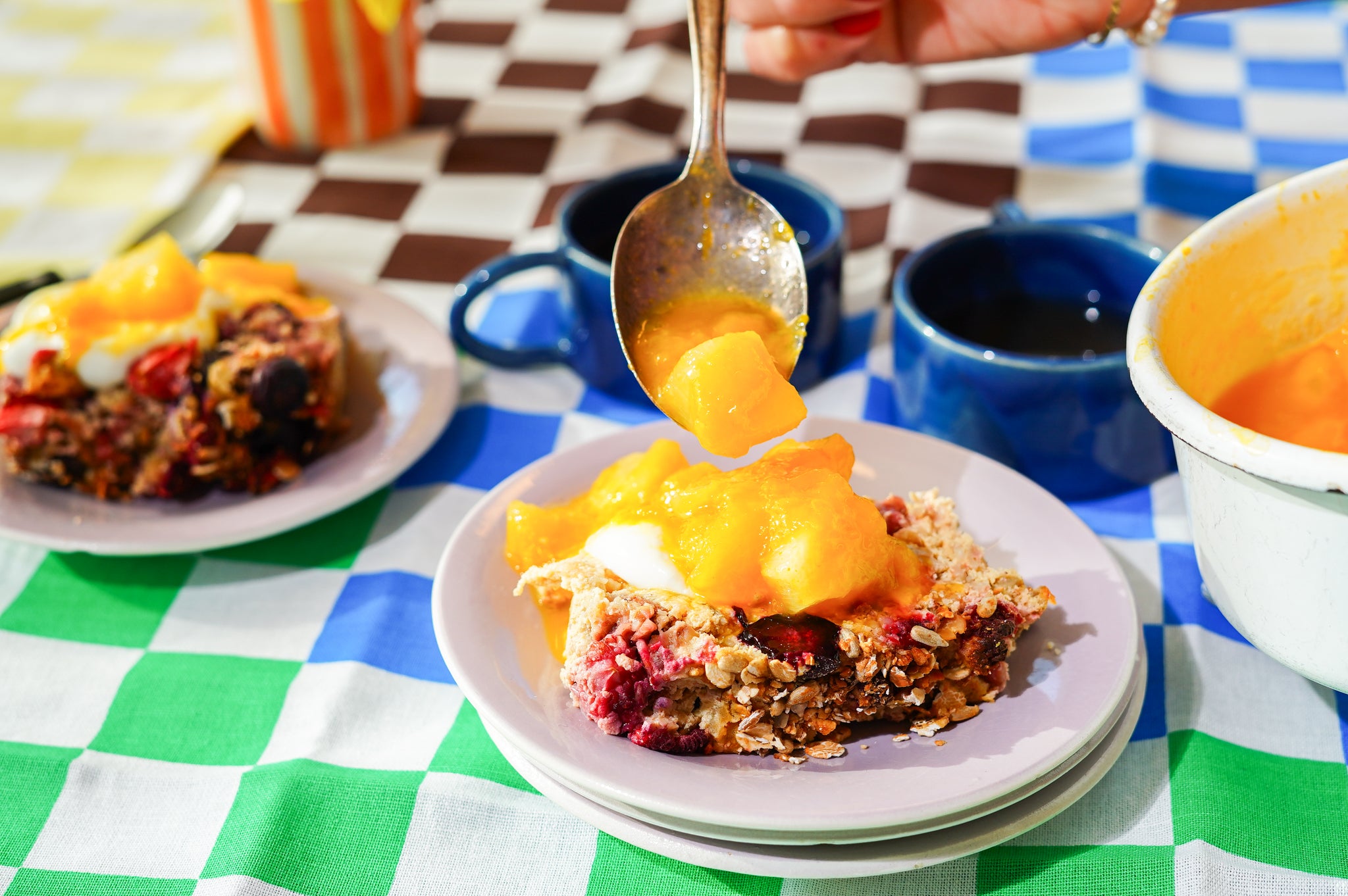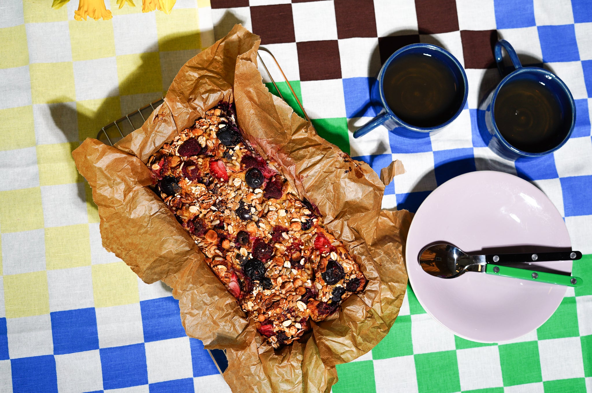 Giet het gemixte beslag over de granola.