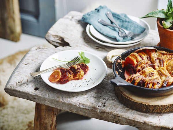 Gratin van rode biet en zoete aardappel
