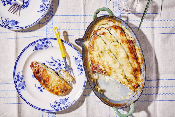 Lazy lasagna van courgette beenhesp en Provolone kaas