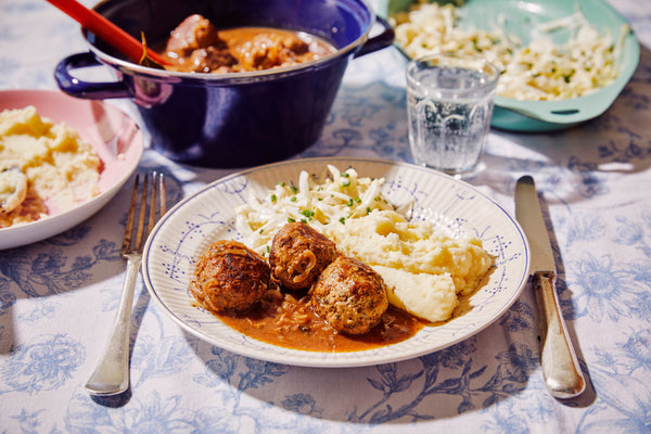 Luikse balletjes met knolselder puree en witloofsalade