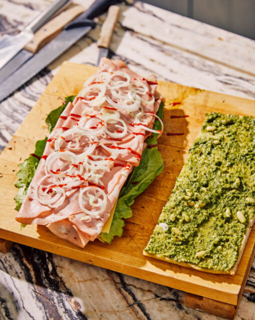 Mortadellasandwich op homemade focaccia