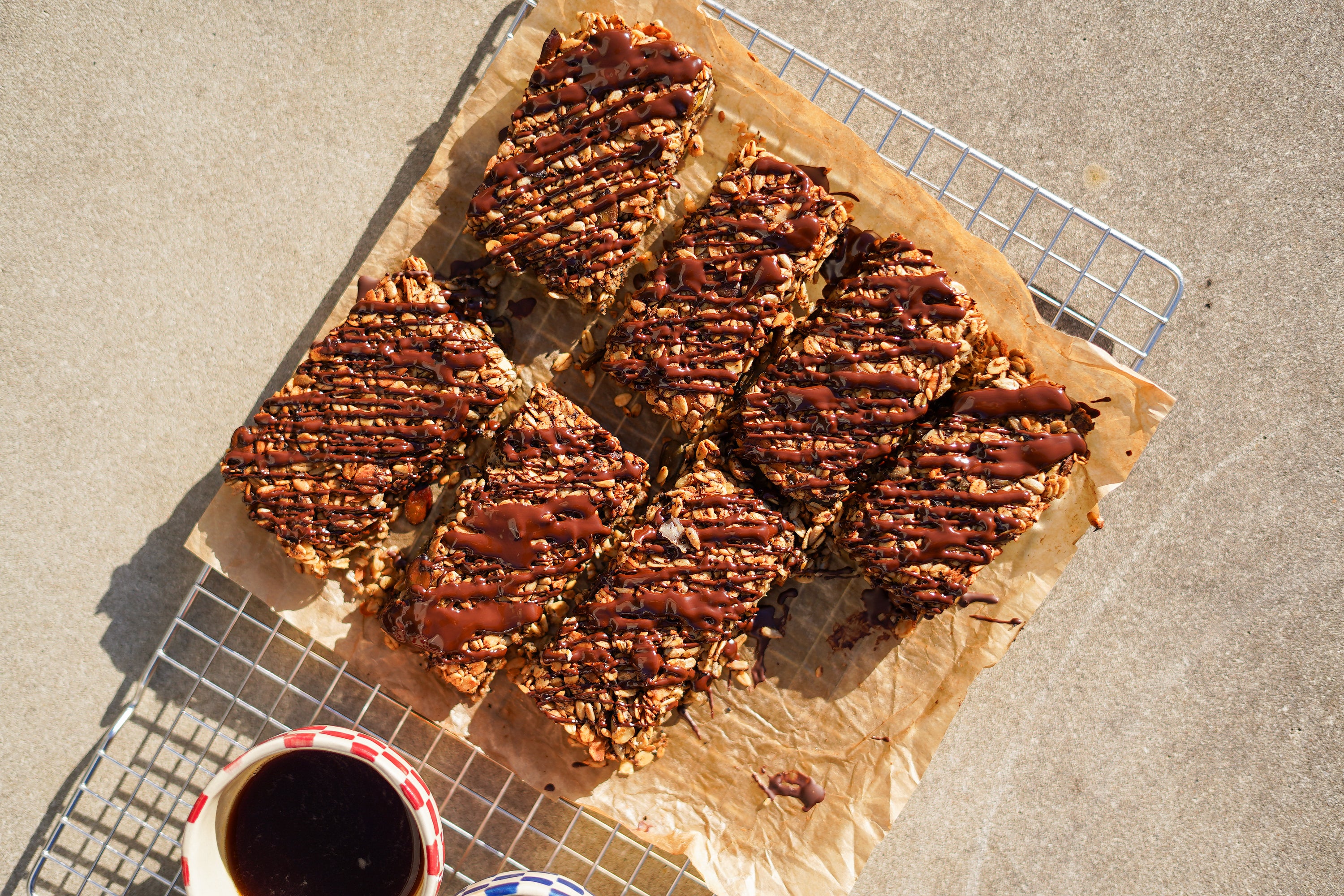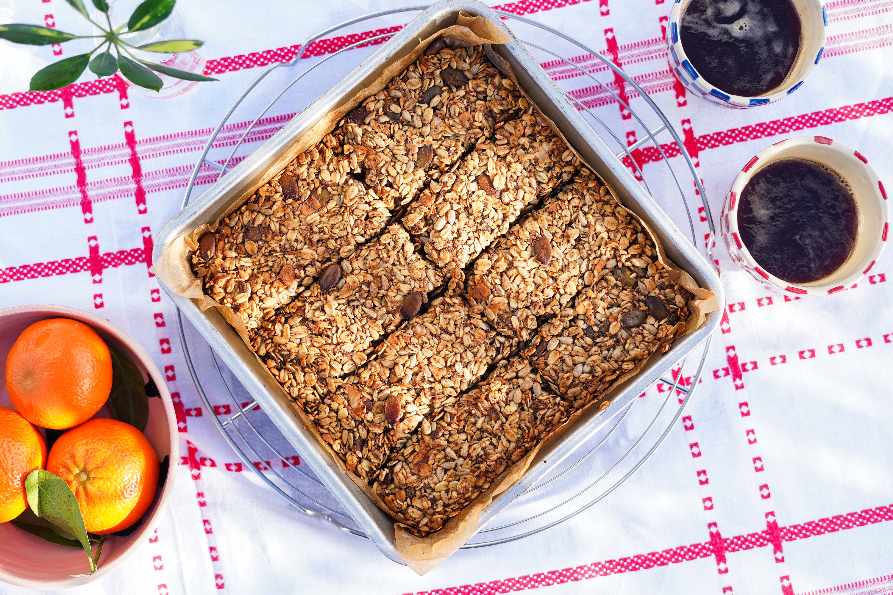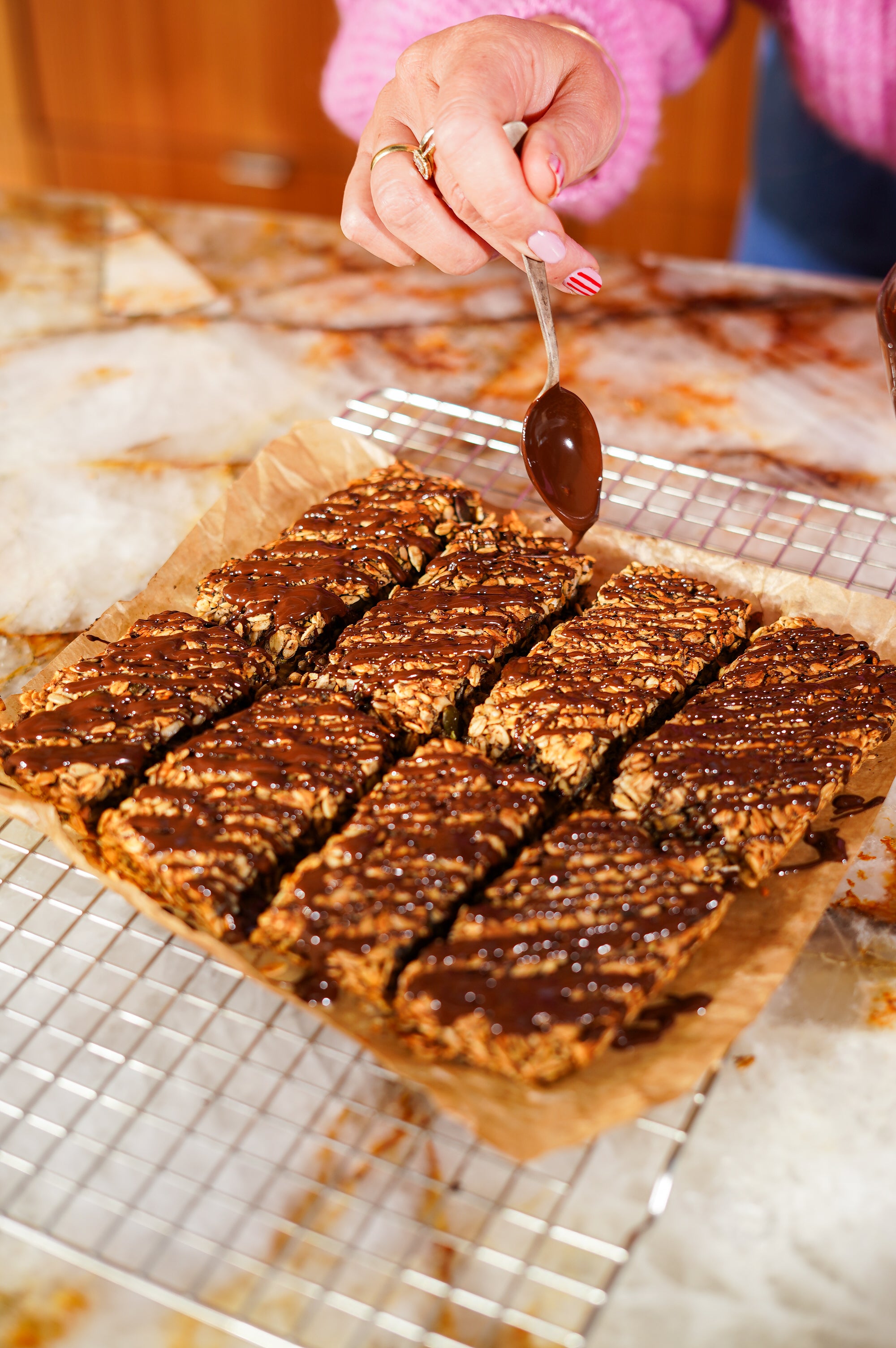 - Laat de granola volledig afkoelen voor je ze snijdt.