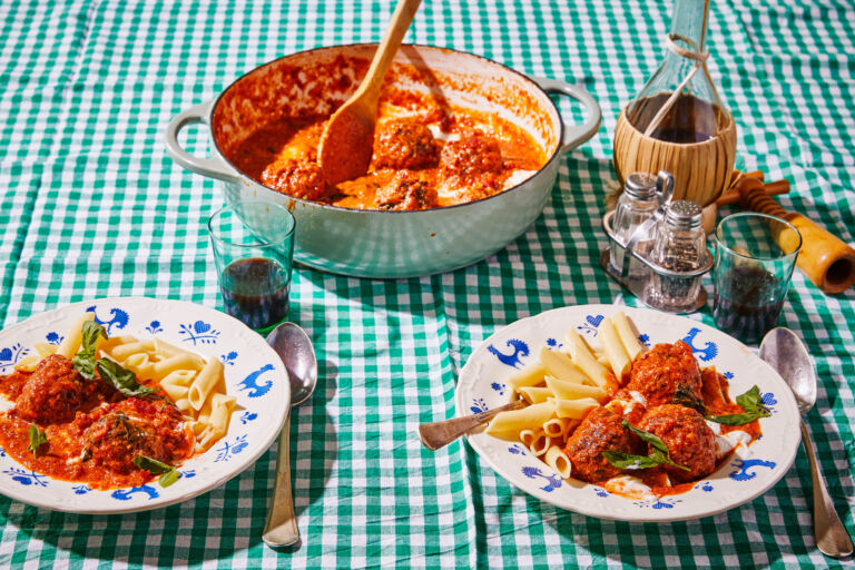 Penne all’Arrabiata met Sobrasada Meatballs & Burrata