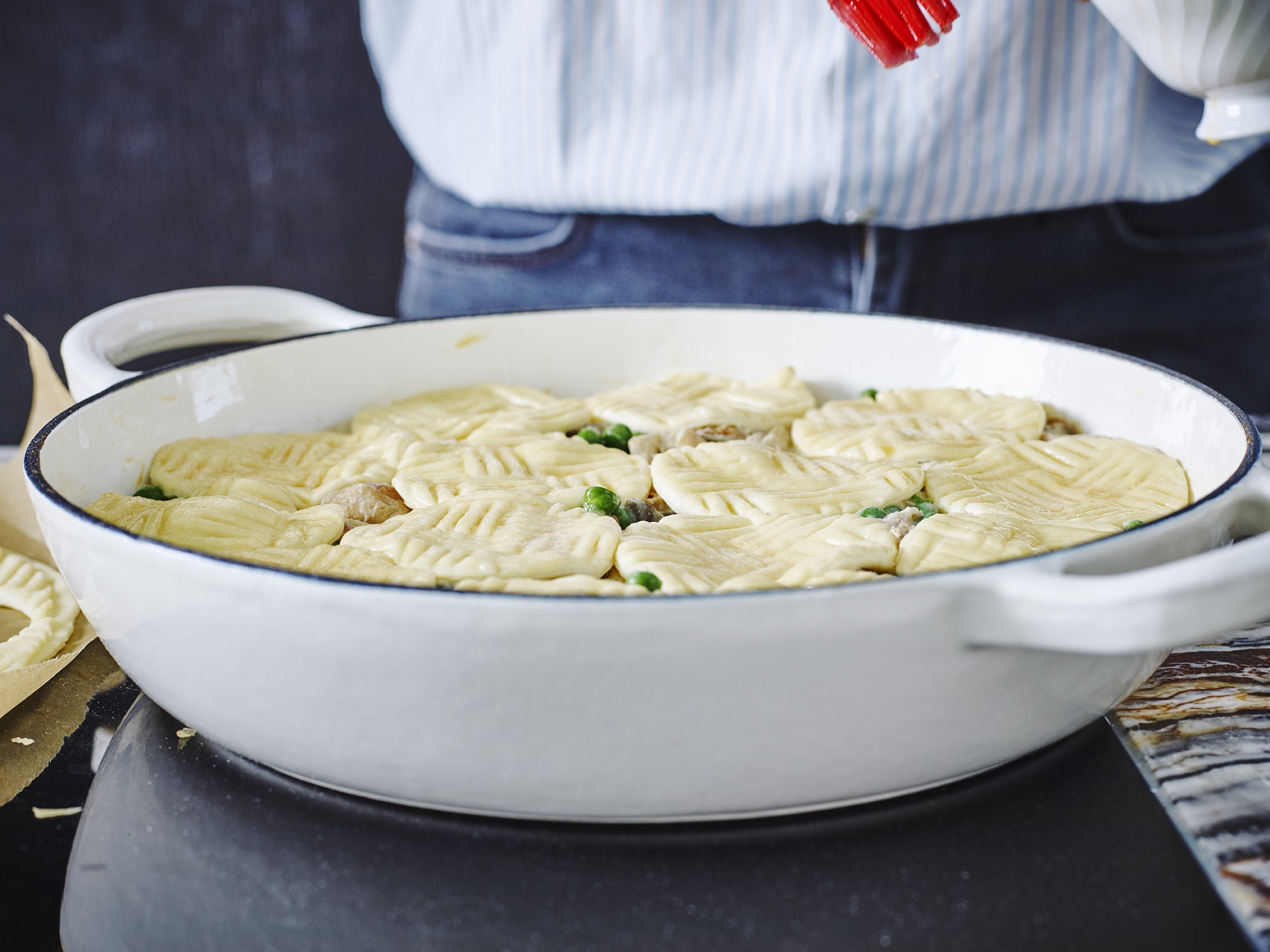 • Doe de koude vol-au-vent in een lage ovenschaal en druk zo egaal mogelijk aan.