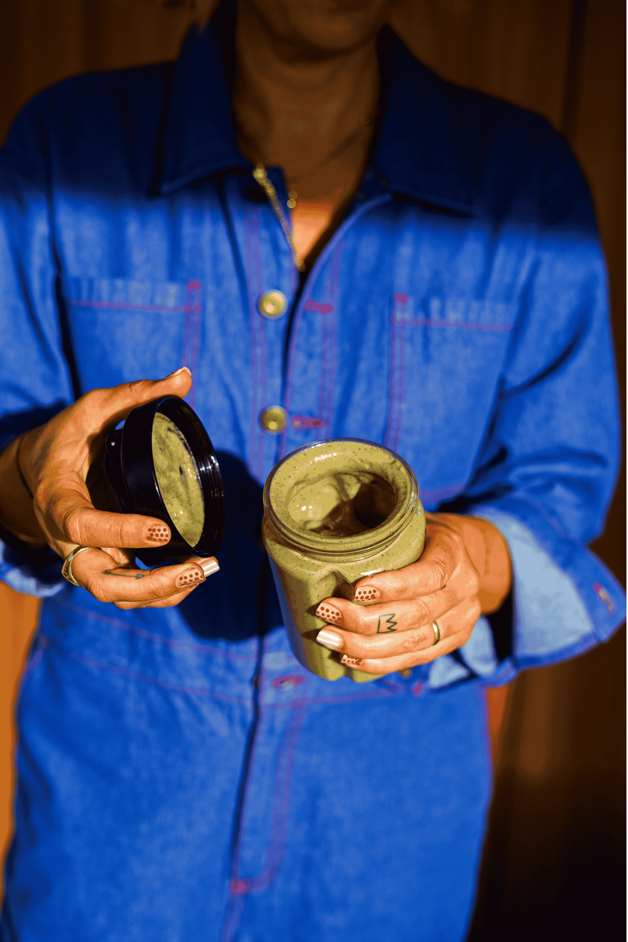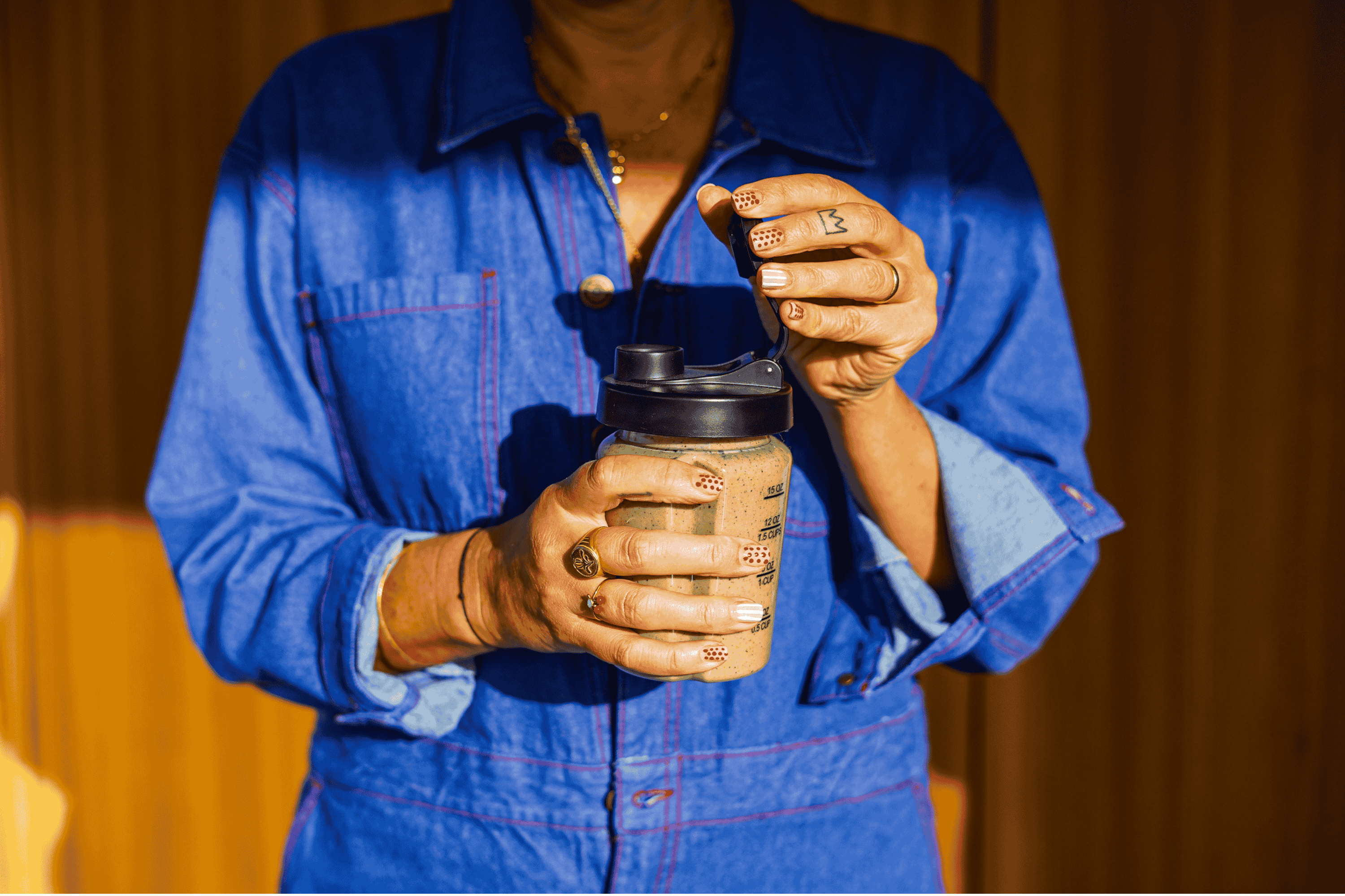 Smoothie van blauwe bes en avocado met pindaboter en chiazaad