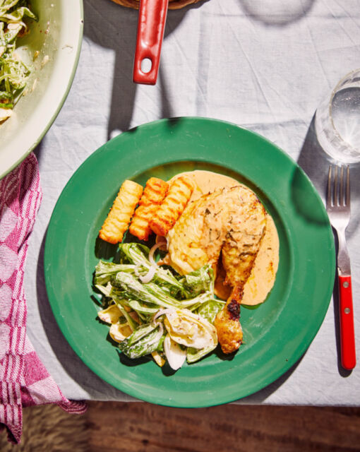 Snelle kip met extra crispy vel en witloof-veldsla salade uit de Cookeo