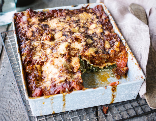 Zet de ovenschaal ongeveer 25 tot 30 minuten in de oven tot de lasagne gaar is en je bovenaan een krokant korstje hebt.