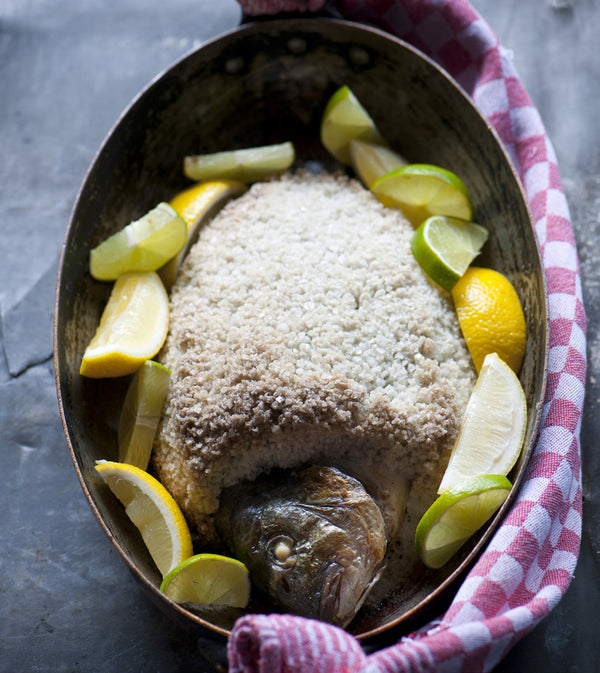 Supersimpel en toch ziet het er indrukwekkend uit. Je hebt heel veel zout nodig om dit gerecht te maken, maar geen zorgen: het dient enkel om de vis vochtig te houden in een korst en om de stevige textuur te bewaren. Het zout dringt dus niet in de vis.