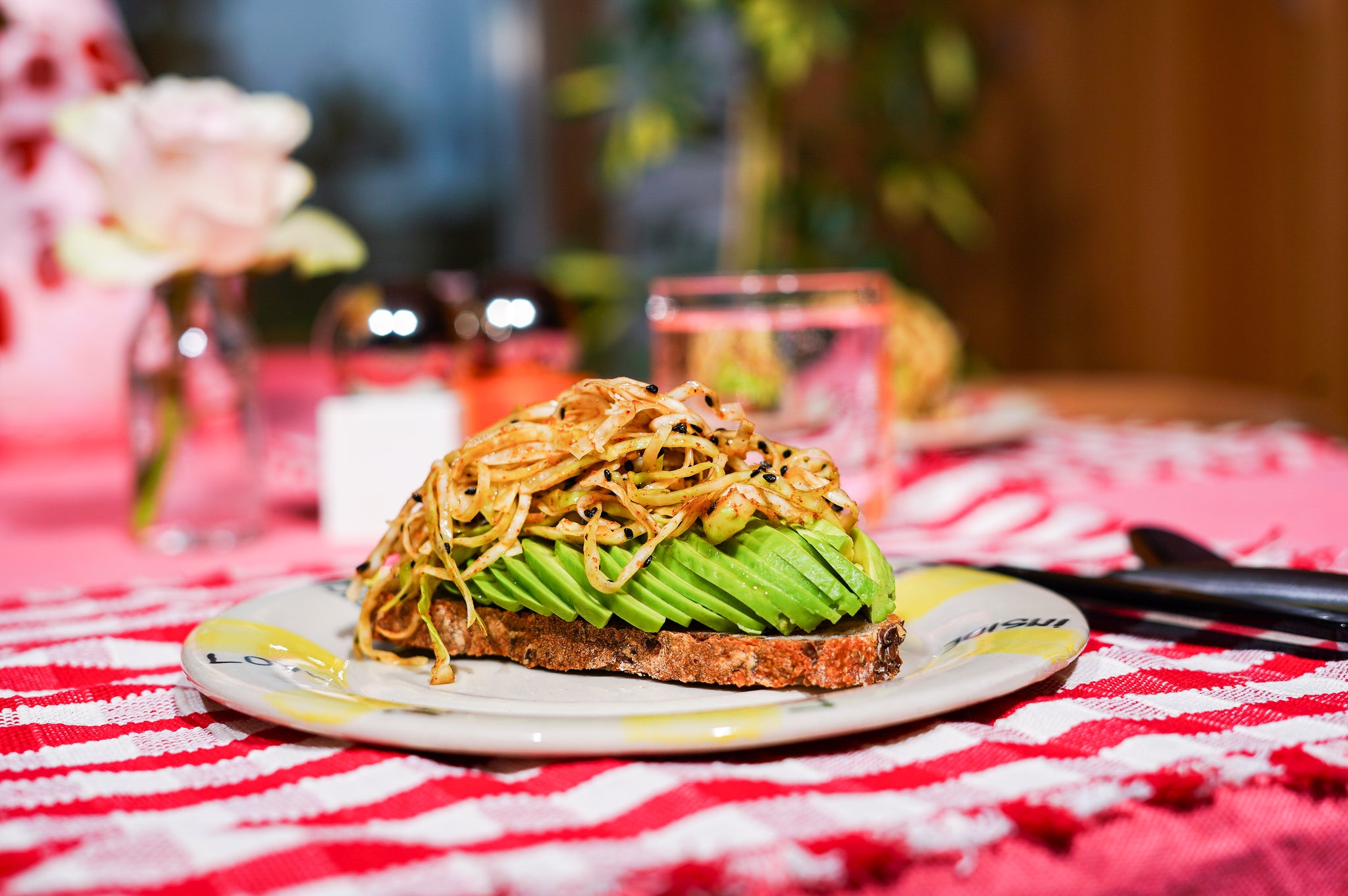 Halveer de avocado’s, verwijder de pitten en snijd elke helft in dunne schijfjes. Leg de schijfjes mooi op het brood.