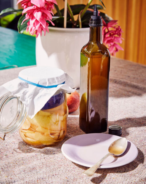 Maak je eigen appelazijn met dit eenvoudige no-waste recept. Gebruik appelschillen en honing voor een natuurlijke, ongefilterde azijn.