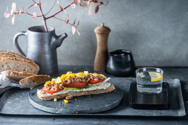 Zuurdesemboterham met tomaat garnaal