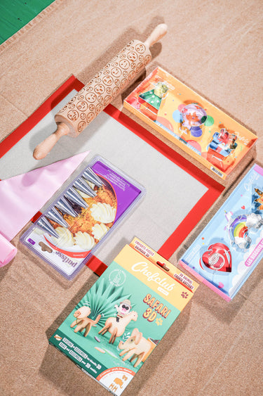 Daarbovenop krijg je een siliconen bakmat (easy clean, mama’s blij), een deegrol met emoticons (ja, écht), een spuitzak én een 6-delige set spuitmondjes voor de ultieme decoratie-sessie. Van happy faces tot sugar chaos, alles mag.