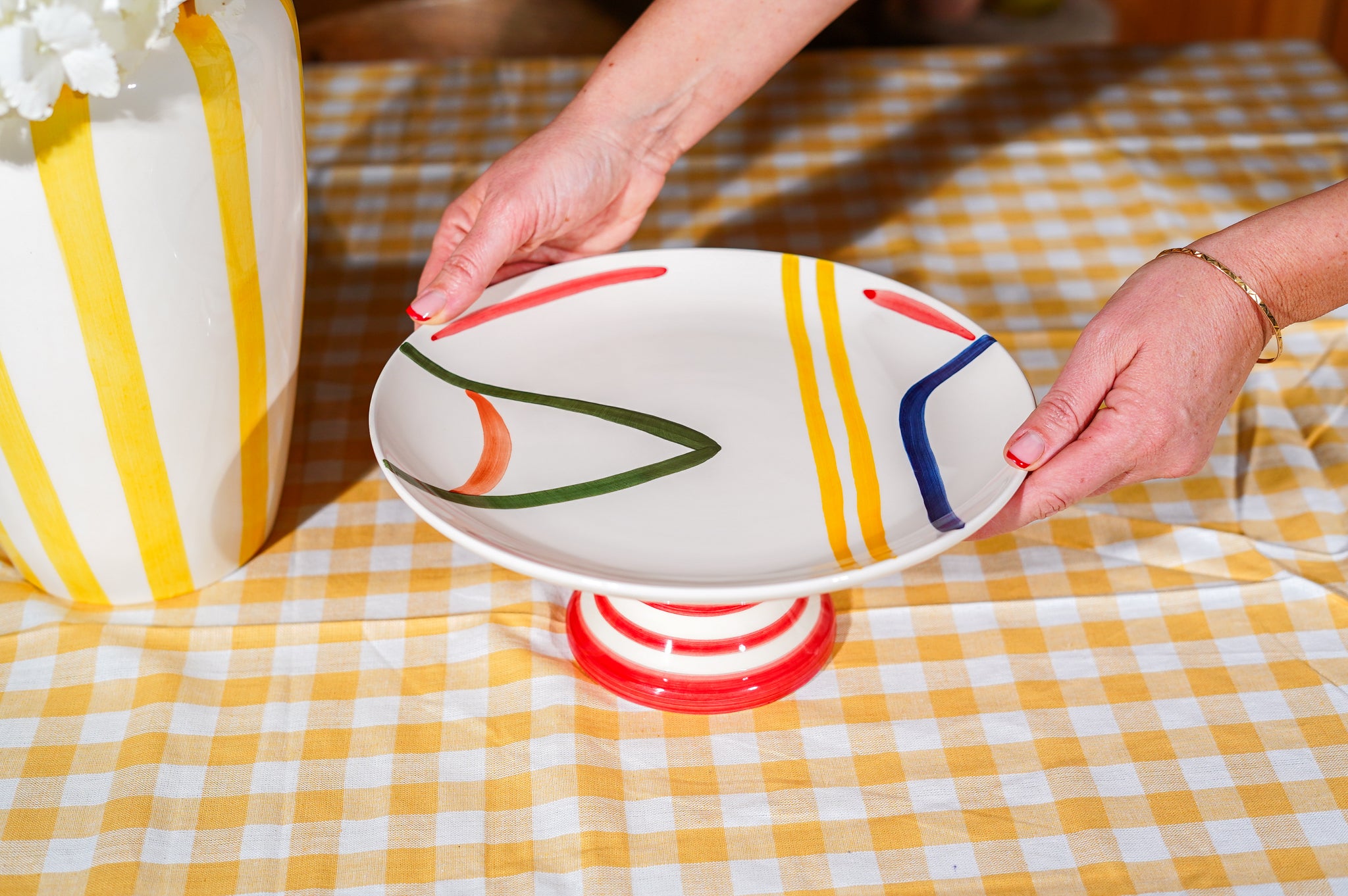 Handgemaakte taart plateau Val Pottery