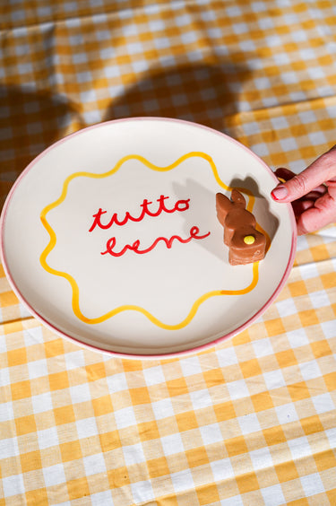 Een zelfgemaakte taart verdient een mooi podium. Deze handgemaakte pie holder van Val Pottery zet je quiche, fruitentaart of hartige plaattaart meteen in de schijnwerpers, want zo hoort het ook. Verkrijgbaar in drie illustraties: Amore, Eye en Tutto.