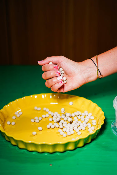 Een keramische quiche vorm voor instant happiness en een set handige bakparels.
