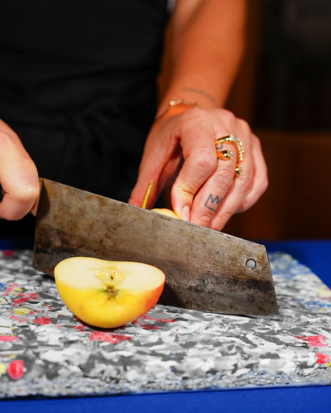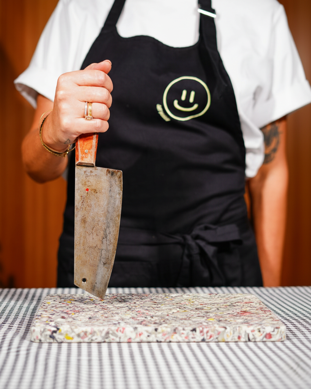 Authentiek en krachtig. Dit mes ligt goed in de hand en snijdt moeiteloos door groenten, vlees en vis. Elk stuk is uniek.