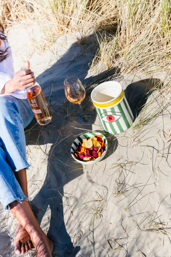 Koude wijn of champagne serveren mag er ook mooi uitzien. Deze handgemaakte wine chiller uit Portugal is zo'n stuk dat meteen de aandacht trekt aan tafel. Kleurrijk, speels en volledig met de hand gemaakt, zonder machines. Elk stuk is dus net even anders, en dat is precies wat hem zo leuk maakt.